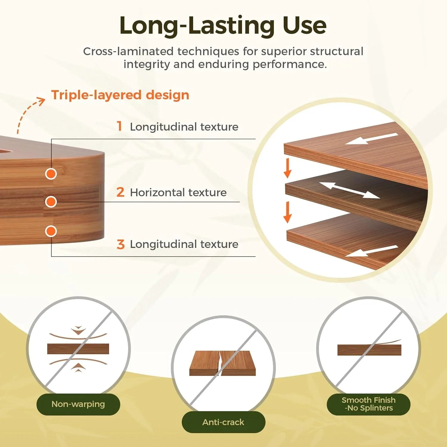 The cross-laminated structure helps prevent warping and cracking, guaranteeing long-lasting usability even with daily wear and tear. Such construction maintains the board's flatness for consistent kitchen work.