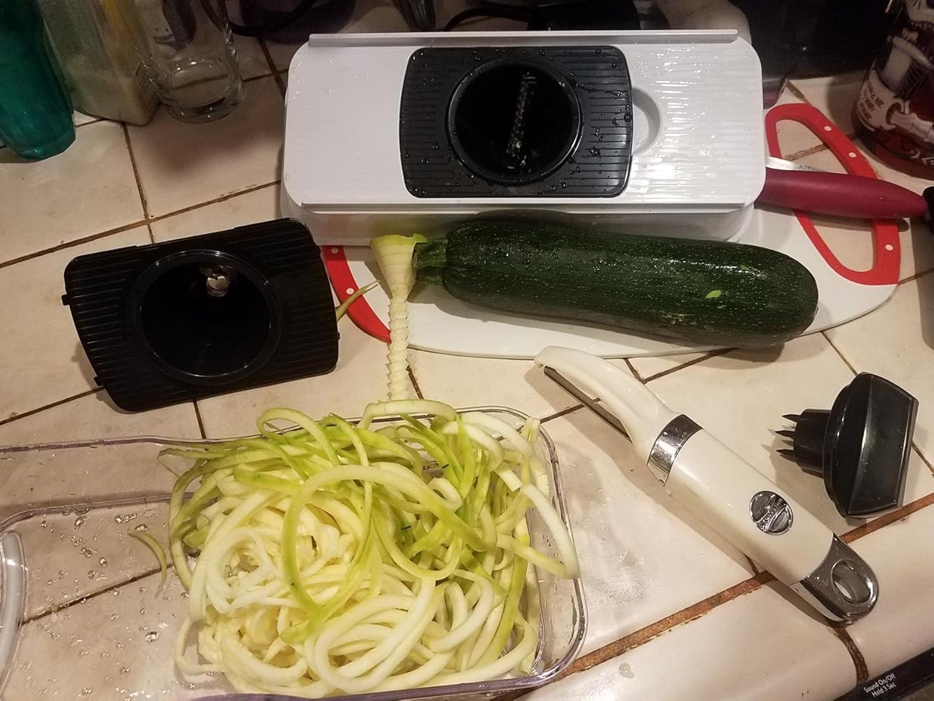This range of thickness options makes the handheld mandoline slicer a versatile addition to any kitchen prep tool set. It works wonderfully with cucumbers, onions, potatoes, zucchini, and many other vegetables.